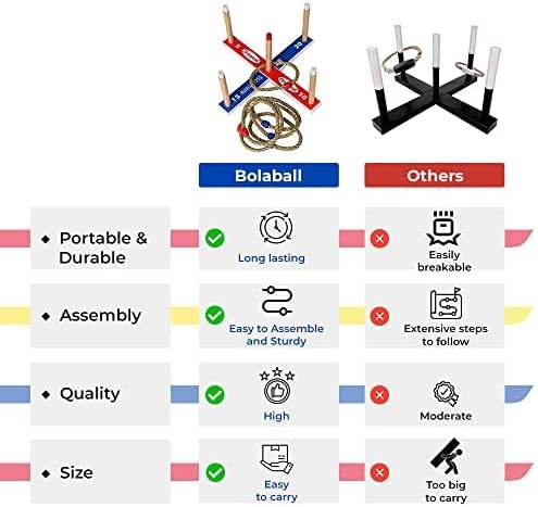 Enjoy endless hours of entertainment with Bolaball’s Ring Toss Game Set, the perfect addition to your collection of indoor and outdoor games. Crafted from premium solid wood, this ring toss game is built for durability, making it ideal for both outdoor ring toss fun in the yard or indoor ring toss games during rainy days. Whether you're planning a fun-filled family game night or a lively tailgating event, this ring toss game set brings people together for healthy competition and team-building.