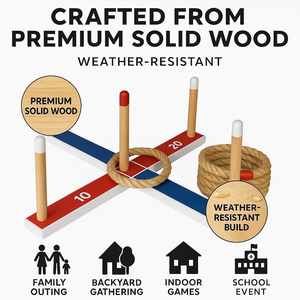 Premium Wooden Ring Toss Game Set – Fun for Adults & Kids, Perfect for Outdoor Family Fun!