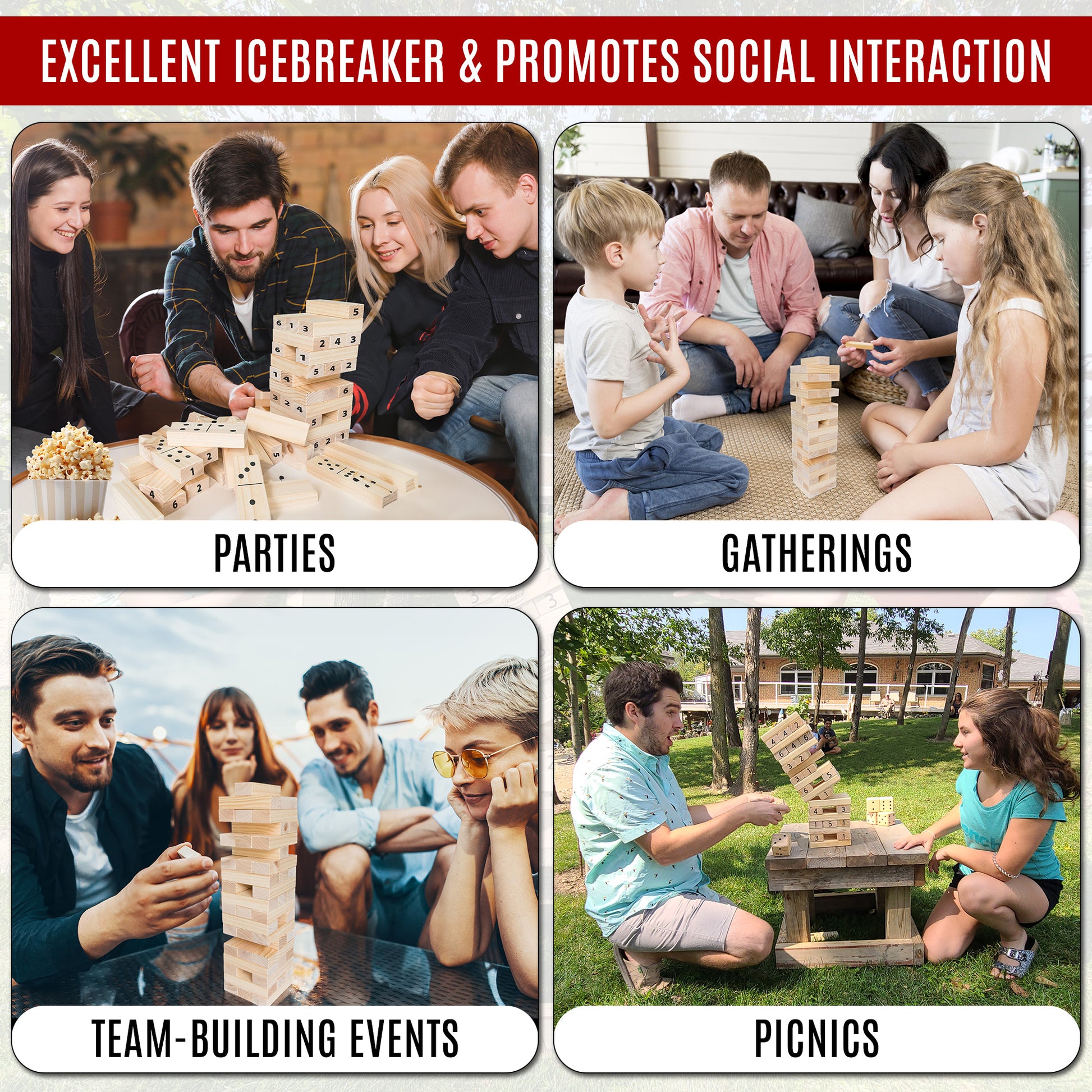 - Portable and Easy to Set Up: Perfect for family gatherings, BBQs, or any occasion that calls for giant tumbling tower fun.